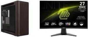 ASUS ProArt PA602 Wood Edition Retro Brown E-ATX Mid-Tower Case with Tempered Glass, Supports 440mm GPUs, 420mm Radiators, Includes One 140mm and Two 200mm Pre-Installed Fans. MSI 27" QHD 2K 1440P 180Hz with AMD FreeSync Sync 0.5ms HDR Read