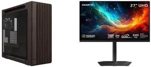 ASUS ProArt PA602 Wood Edition Retro Brown E-ATX Mid-Tower Case with Tempered Glass, Supports 440mm GPUs, 420mm Radiators, Includes One 140mm and Two 200mm Pre-Installed Fans. GIGABYTE 27" UHD 4K 240Hz with AMD FreeSync Premium Pro &, G-SYN
