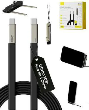 240w stand data cable, Detachable 2 in 1 Super Fast Charging Cable with 360° Invisible Stand, Charger Cord & Phone Holders for Gaming Office Car Travel, Zinc Alloy Type-C (Black, Data Cable Set)