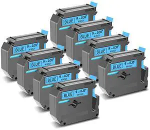 GREENCYCLE Compatible for Brother M521 M-K521 MK521 M-521 MK521s 0.35 Inch Non-Laminated Label Tape 3/8" x 26.2ft (9mm x 8m) for PT-45M PT-90 PT-70BM PT-70 PT-M95 PT65 PT-85 (Black on Blue,8 Pack)