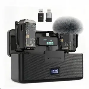 wireless lavalier microphone, suitable for iPhone/Android phones/cameras/computers/four in one lavalier microphone, suitable for video and audio recording, TikTok, etc., with microphone Bags, black