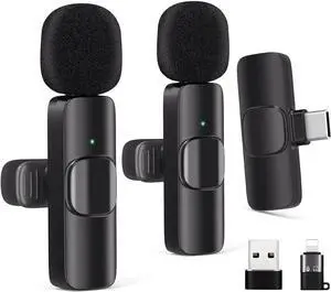 Wireless Lavalier Microphone for iPhone/Android, Noise Reduction, USB-C Plug and Play Mini Lapel Mic Clip on Microphone Wireless 2 Pack, Ideal for Content Creator, Video Recording, Vlogging, Streaming