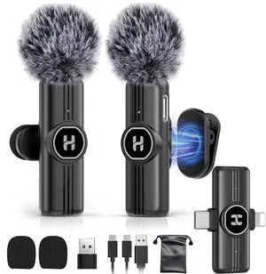 2 Pack Wireless Lavalier Microphone for iPhone, Professional Lapel Mics, Wireless Mic Plug-Play, Lapel Microphone for Video Recording Interview TikTok (USB C for Android iphone15/16)