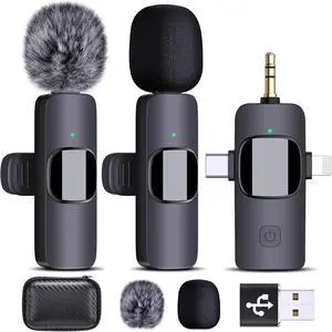 Wireless Lavalier Microphone for iPhone - Android Phone/Camera/Computer/Laptop, Professional Dual Lapel Mic with USB-C/3.5mm/USB Plug for Video Recording, Vlog, YouTube, TikTok