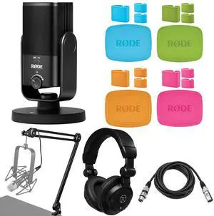 XLR/USB Podcast Microphone, Gaming Mic with Mute Button, Reverb Effects, Noise Cancellation, Boom Arm Stand, Headphones Jack, Dynamic Microphone for Streaming/Recording/Gaming/Vocal-Black