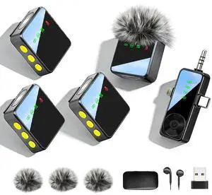Wireless Lavalier Microphone for iPhone, Android, Cameras - Mini Microphone with Noise Reduction, 328FT Transmission and 40H Battery Life, 4 Mic for Video Recording, TikTok and YouTube(Black)