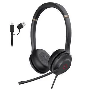 UH37 USB Headset with Mic,Wired Headset with Noise Cancelling Microphone for Computer PC Laptop VoIP Phone,USB-C/A Cable,Works with Zoom and Other Leading UC Platforms