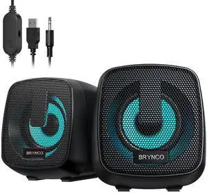 2.0 Channel RGB Computer Speakers | Compact Size with Dynamic Color-Changing Lights & Clear Audio | USB-Powered for PC/Laptop/Tablet/Phone | Plug & Play, Wired Remote (Black)