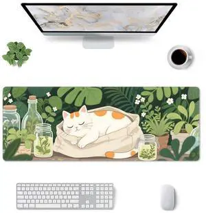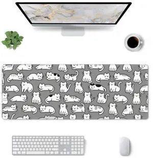 CANFLASHION Cute Kitty Large Desk Mat - 31.5"x11.8" Non-Slip Waterproof Computer Mouse Pad,Washable Fabric Surface with Rubber Base for Office & Home Use,Extended Keyboard Mat(300x800x3mm)