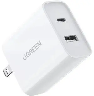 UGREEN USB C Charger 30W Power Delivery 3.0 Type C and USB A Dual USB Fast Charger with Foldable Plug for MacBook Air 13 inch, iPad Pro, iPhone 13 13 Pro Max 12 12 Pro XR, 11 Pro, XS, iPhone SE 2020,