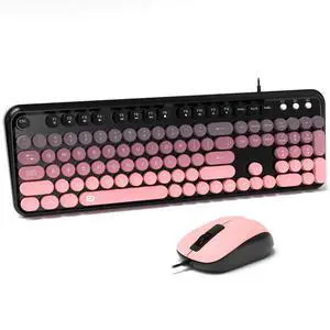8870P Wired Keyboard and Mouse Combo - Full-Sized Computer Keyboards with 104 Round Keys Retro Typewriter Mouse and Keyboard for PC Windows Desktop Laptop - Pink Colorful