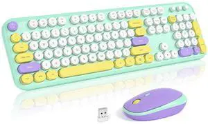Wireless Keyboard and Mouse Combo, USB 2.4GHz Full Size Typewriter Keyboard with Number Pad and Colorful Mouse for Office PC Computer Desktop Laptop Windows 7 8 10 (Mint Green)