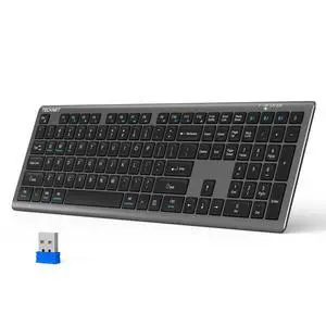 TECKNET Bluetooth Keyboard Rechargeable, 4-Device Free Switching (2.4G+BT), Ultra-Slim Full Size Wireless Keyboard, Quiet Typing, for PC/Laptop/Smart TV/Phone, Adjustable Stand, 12 Multimedia Keys