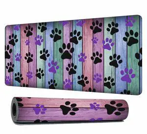 Y YIHANGBEST Dog Paw Large Gaming Mouse Pad Rustic Rainbow Woodgrain Black Purple Pets Foot Long Mousepad Non-Slip Rubber Base Keyboard Mat for Desk,Office,Home 35.4"X15.7"