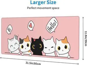 Black Cat Anime Desk Gaming Mat, XL Green & Large, 31.5x15.8in, for Women & Offices