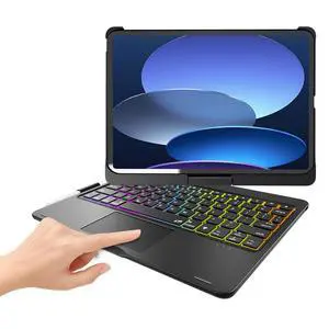TouchPad Keyboard Case for iPad 10th Generation&iPad 11th(A16,2025),iPad Air 11M3,M2/iPad Pro 11 inch Keyboard&iPad Air 5th/Air 4th Keyboard, 360°Swivel,7 Use Modes,Rainbow Backlight- Black