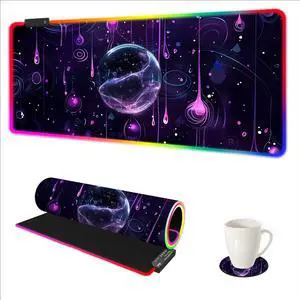 Large RGB Gaming Mouse Pad Anime Night Sky Space Stars Desk Pad,Mousepad Non-Slip Rubber Base with 12 Lighting Modes,Desk Accessories,Office Decor,Computer Keyboard Mat Soft Mouse Mat 31.5X15.7 inches