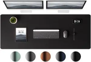 Leather Desk Pad Protector, Office Mat, Large Mouse Pad, Laptop Desk Pad, Non-Slip PU Leather Blotter, Waterproof Writing Pad for Office and Home (Black, 47" x 17")