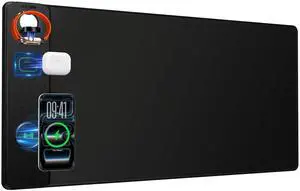 Magnetic Wireless Charging RGB Mouse Pad, Large Gaming Desk Mat Waterproof, 31.5"x11.8" Black Mousepad, Ultra-Smooth Surface, Non-Slip Rubber Base, Desk Pad for Keyboard Laptop