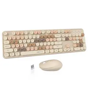 Colorful Computer Wireless Keyboards Mouse Combos, Typewriter Flexible Keys Office Full-Sized Keyboard, 2.4GHz Dropout-Free Connection and Optical Mouse (Milk Tea -Colorful)