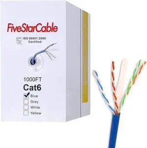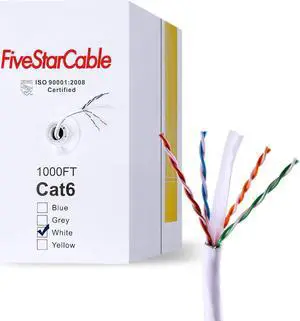 Big-A - 1000ft Cat5e Plenum Ethernet Cable, White, 350MHz, 24AWG UTP, CMP Rated, Solid Network LAN Cord, Compatible with Printer, Gaming Consoles, Router, VoIP Phones, POE IP Cameras