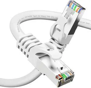 Cat8 Ethernet Cable 200 ft (60.96m), Outdoor&Indoor, Flat 40Gbps 2000MHz S/FTP Cable, Heavy Duty Internet Cord, UV Resistant Weatherproof Shielded RJ45 for Router, Modem, Switch, Gaming, PC, TV, White