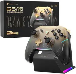 G5Pro V2 1000HZ Wireless Gaming Controller for NS/PC/iOS/Android with Charging Dock,PC Controller With Hot-Swappable Joystick,Optical Triggers,Optical Micro Switches,RGB Backlight, Black Gold