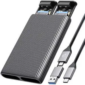 Dual M.2 NVMe with SATA SSD Enclosure, USB C to M2 Adapter for M Key PCIe & B+M Key 2230/2242/2260/2280 M.2 SSDs, Tool-Free Installation Aluminum Case Support Trim and UASP up to 2x4TB