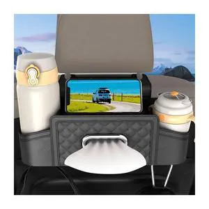 Car Seat Back Organizer, Multifunctional Vehicle Headrest Storage Box with Hooks and Phone Holder, Automotive Backseat Tissue Cup Holder Accessories, Universal for SUV Sedan Truck (Black)