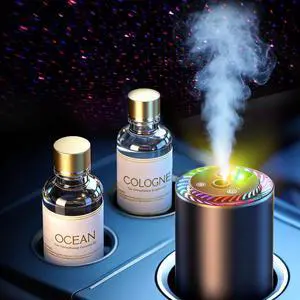 Smart Car Air Freshener with Star Light & 100ml Diffusers Oil Refills, Auto On/Off Aroma Diffuser, 3 Adjustable Mist Modes Rechargeable Aromatizante para Carro - Car DiffuserCologne+Ocean