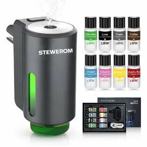 Car Air Freshener - Smart Adjustable 3-Speed Intensity, Rechargeable Humidifier Car Essential Oil Diffuser - Comes with 8 Bottles of 10ml Perfume (Gray)