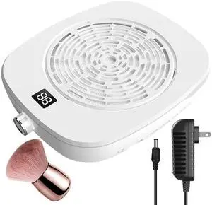 Rechargeable Nail Dust Collector, Powerful Dust Suction Machine with Nail Tech LED Display,Adjustable Speed Reusable Filter,Strainer Panel for Acrylic Nail Polishing,Salon & Home Use