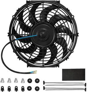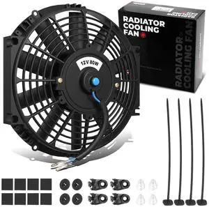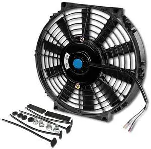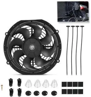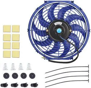 Slim Electric Radiator Cooling Fan - 12 Inch, 12V 80W Motor, Blue, with Mounting Kit