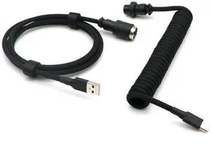 KCSJXF Pro Coiled Keyboard Cable, Double-Sleeved Mechanical Keyboard Cable with 5Pin GX16 Aviator, 1.2m USB A to USB Type C (Black)