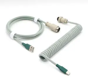 KCSJXF Pro Coiled Keyboard Cable, Double-Sleeved Mechanical Keyboard Cable with 5Pin GX16 Aviator, 1.2m USB A to USB Type C (Light Green)