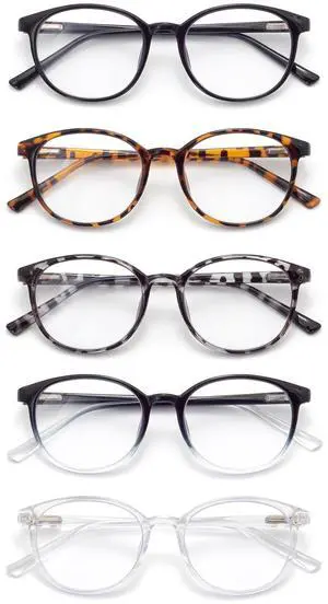 FoxMook 5-Pack Blue Light Blocking Glasses Round Women Men Computer Glasses Anti Eye Strain/UV/Glare Gaming Glasses, 5 Mix Colors