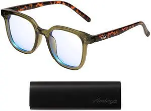 AMBEYE TR90 Oversized Blue Light Blocking Glasses for Gaming, Office & Reading, Anti UV Protective Glasses for Drivers, Outdoor Activities, Men & Women(Green + Tortoiseshell)