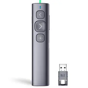 N95 Presentation Clicker, PowerPoint Clicker for Presentation Remote, Rechargeable Wireless Presenter Pointer, Slide Advancer for PC/Laptop/e-Book (BLE&USB-A&C, Green Light)