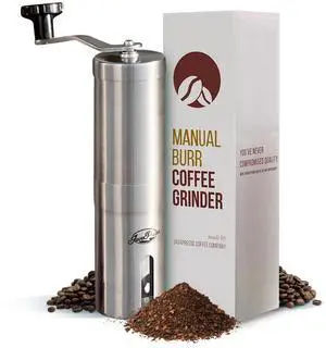 nual Stainless Steel Coffee Grinder - 18 Adjustable Settings, Portable Conical Burr Grinder for Camping, Travel, Espresso - With Hand Crank