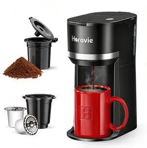 Small Single Serve Coffee Maker for K Cup and Grounds, Fast Brew One Cup Coffee Machine with One Button, 6 to 12 oz. Brew Sizes, Perfect for Home and Travel, Black