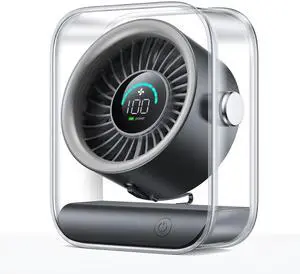Rechargeable USB Desk Fan, Quiet Table Fan with Turbo Airflow, 100 Speeds, Digital Display, 90° Rotating, Small Battery Desktop Fans for Bedroom Home Office Travel, Black
