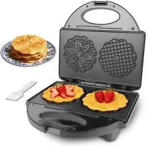Pizzelle Maker with Non-Stick Coating, Electric Pizzelle Cookie Baker Press with Snowflake Pattern, Make Two 4 Inch Traditional Italian Waffle Cookies at Once, Recipe Included