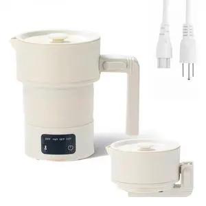 Portable Electric Kettle-600ML Collapsible Electric Kettle600W Travel Water Boiler with 4-Temp Presets, Food Grade Silicone for Camping,Hotel, Office