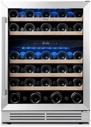 This wine storage system (BWR-462DZ) can hold up to 46 standard 750ml wine bottles; 16 bottles in the top zone and 30 bottles in the bottom zone. The powerful compressor cooling process offers optimum temperatures (low 40ºF to mid 60ºF) for red, white, and sparkling wines. The front ventilation design of this unit allows for flush with cabinet undercounter installation or simply freestanding usage.