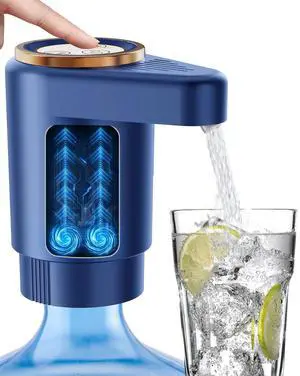 Water Jug Pump for 5 Gallon Bottle Portable Electric USB-C Charging Dispenser, Dual Powerful Motors, Fast Flow, Fits 2-5 Gallon Jugs Ideal for Home, Office, Camping, RV, Dark Blue