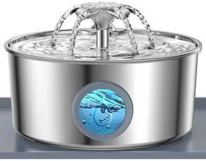 Innovation Award Winner Stainless Steel Cat Water Fountain, 108oz/3.2L Automatic Pet Fountain Dog Water Dispenser with 6 Replacement Filters & Silicone Mat for Cats, Dogs, Multiple Pets (Silver)