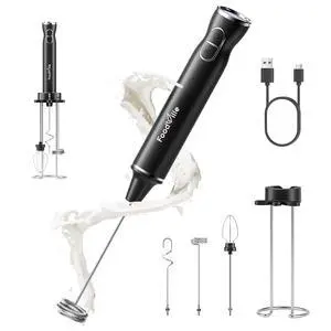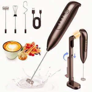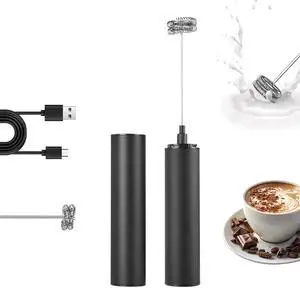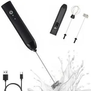 BLack Electric Milk Frother, Handheld Foam Maker with 3 Stainless Steel Whisks & Stand, USB Rechargeable, Compact & Powerful for Coffee, Latte, Cappuccino, Hot Chocolate