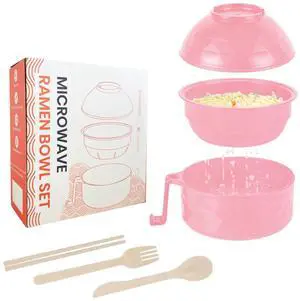 Microwave Ramen Cooker,Ramen Bowl With Chopsticks and Spoon,For Office College Dorm Room Essentials Instant Lunch Ideal for Shin and Buldak Noodle On The Go, Dishwasher-Safe,BPA-Free. (Pink)
