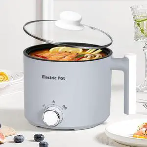 Hot Pot Electric 1.5L, Portable Ramen Non-Stick Cooker for Noodles, Soup, Oatmeal, Ramen Pot with Boil Dry Protection for Dorm, Office, Travel