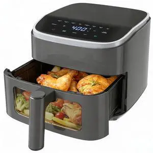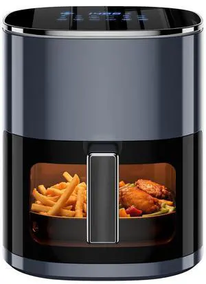 5.8 Quart Air Fryer | 8-1 Preset Cook Modes | Transparent Fry Bowl for Best Cooking Results | Cook Shrimp, Steak, Fries, Wings, Chicken & More | Precise Temperature Control & Time | Grey